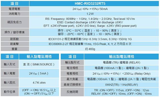 DMCNET 混合式遠程數字輸入輸出模塊 - HMC-RIO3232RT5
